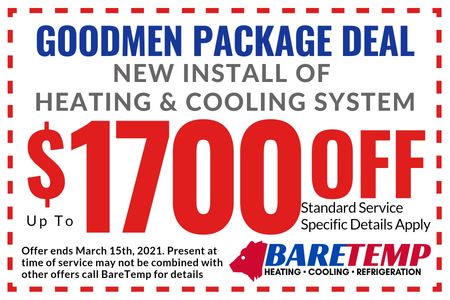 Baretemp Heating, Cooling, and Refrigeration has been repairing/installing HVAC systems since 2015. Welcome to BareTemp.com, we're confident you'll be impressed with our service.